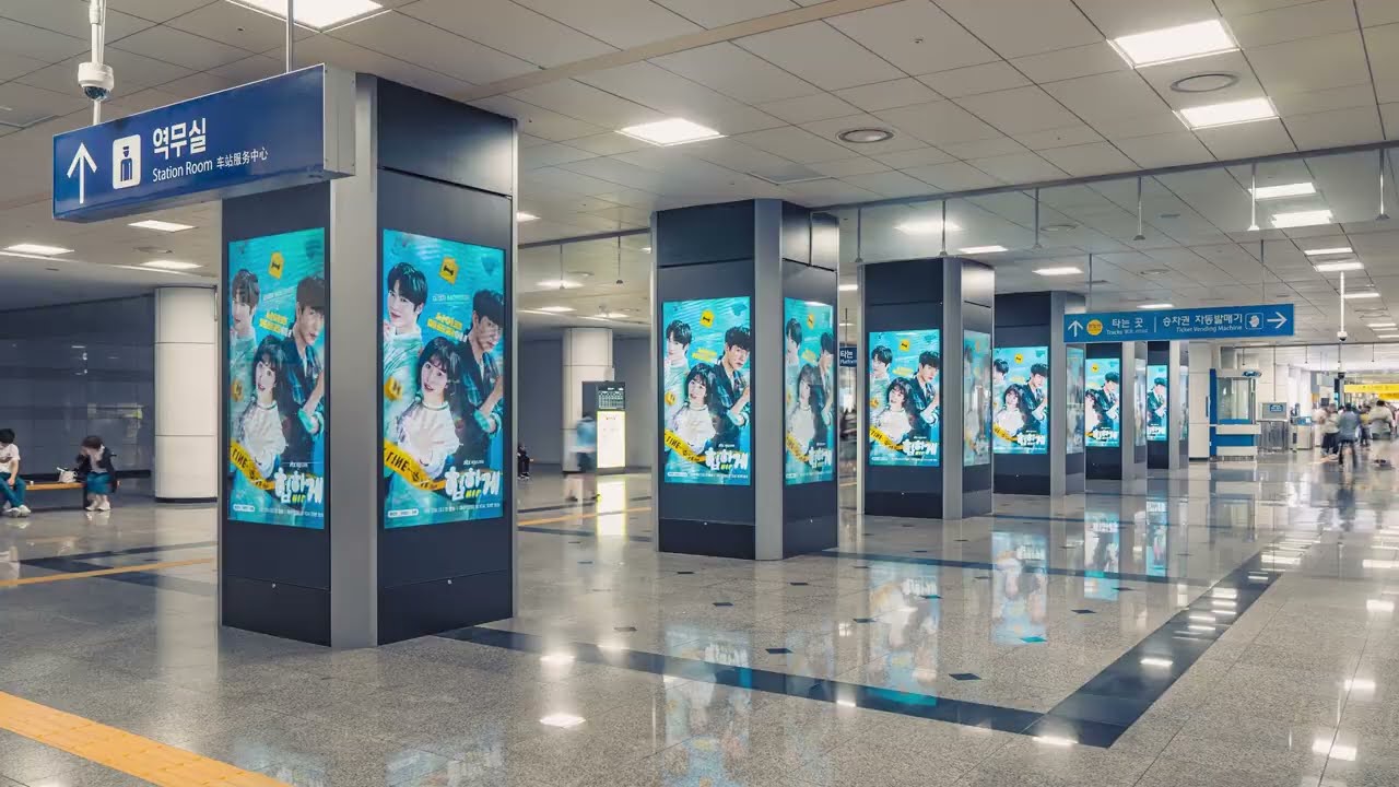헬로로데오 압구정 로데오역에 위치한 디지털 사이니지 매체로, 트렌드 중심지로 필수 이동 동선에 위치하여 높은 구매력과 바이럴 영향력을 갖춘 타겟에게 도달 가능하다 Media Specification Location 분당선 압구정로데오역 지하 1층 대합실 Type 디지털사이니지