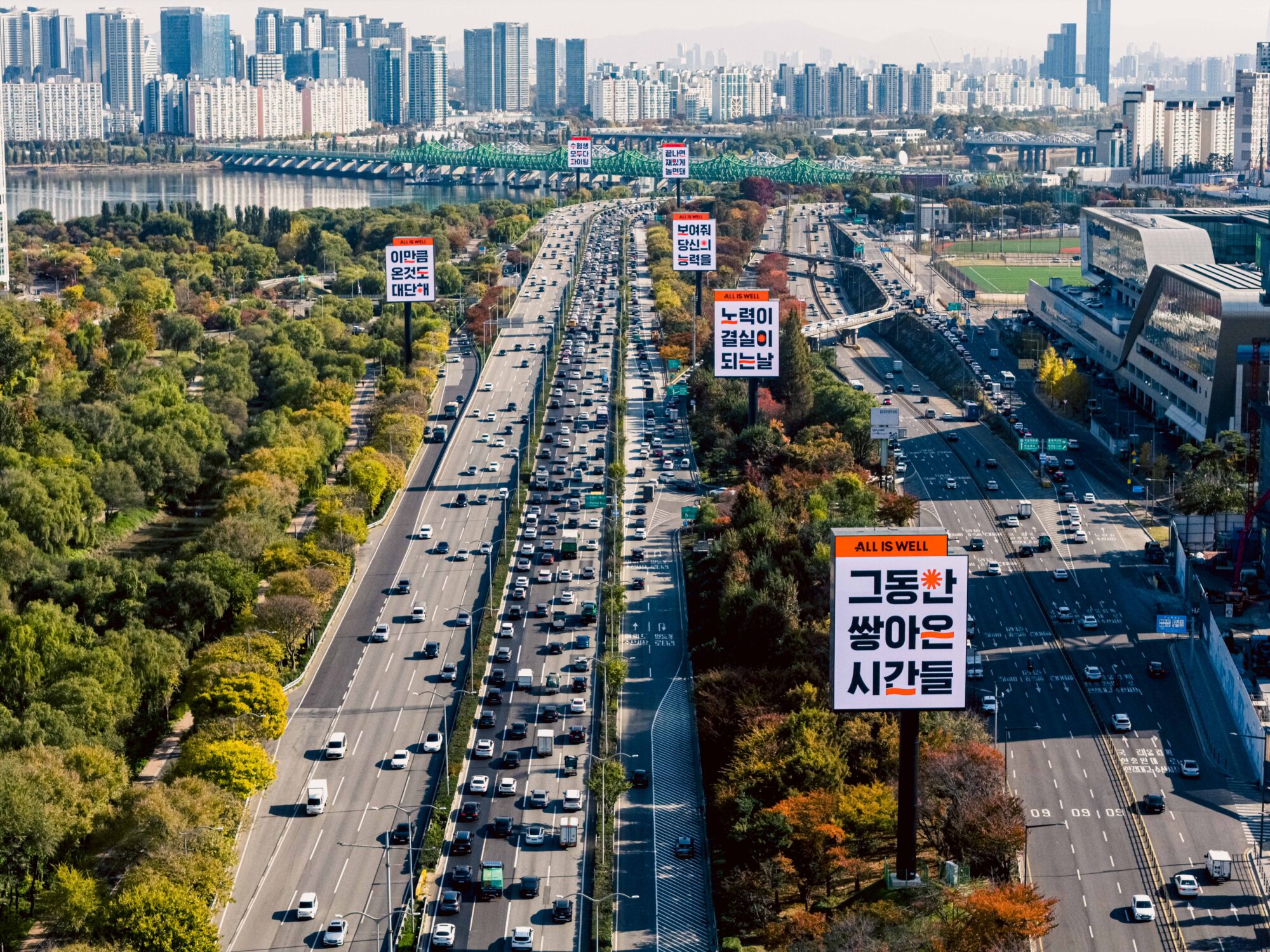 We are everywhere, meet us anywhere We are everywhere, meet us anywhere 로드블럭여의12 로드블럭 여의 12는 서울 교통량 1위 구간(올림픽대로) + 금융 중심지 여의도 + 정치·방송권역 중심이라는 삼중 입지 프리미엄을 가진 최고 시인성 OOH 미디어입니다 김포국제공항 올이즈웰은 수도 서울의 관문이자 동북아 비즈니스 교류의 허브인 김포공항의 국내선·국제선 전광매체를 전면 리뉴얼하여 통합 운용합니다. 경부고속도로 야립 올이즈웰은 경부·호남·중앙·남해 고속도로를 따라 전략적으로 배치된 대형 야립광고 매체를 운용하며, 높은 교통 노출도를 기반으로 탁월한 주목성과 브랜드 임팩트를 극대화합니다. 제주국제공항 올이즈웰은 대한민국 최대 관광지인 제주도의 대문, 제주공항 국내선 OOH 광고를 독점 운영합니다. 한 해 3,000만 명 이상의 전국 단위 방문객에게 광고를 노출하며 균형 잡힌 인지도를 형성해냅니다. 이태원 스크린 이태원 파노라마 나인원한남 사운즈한남 이태원 178 한남아트월 Let’s work together get in touch